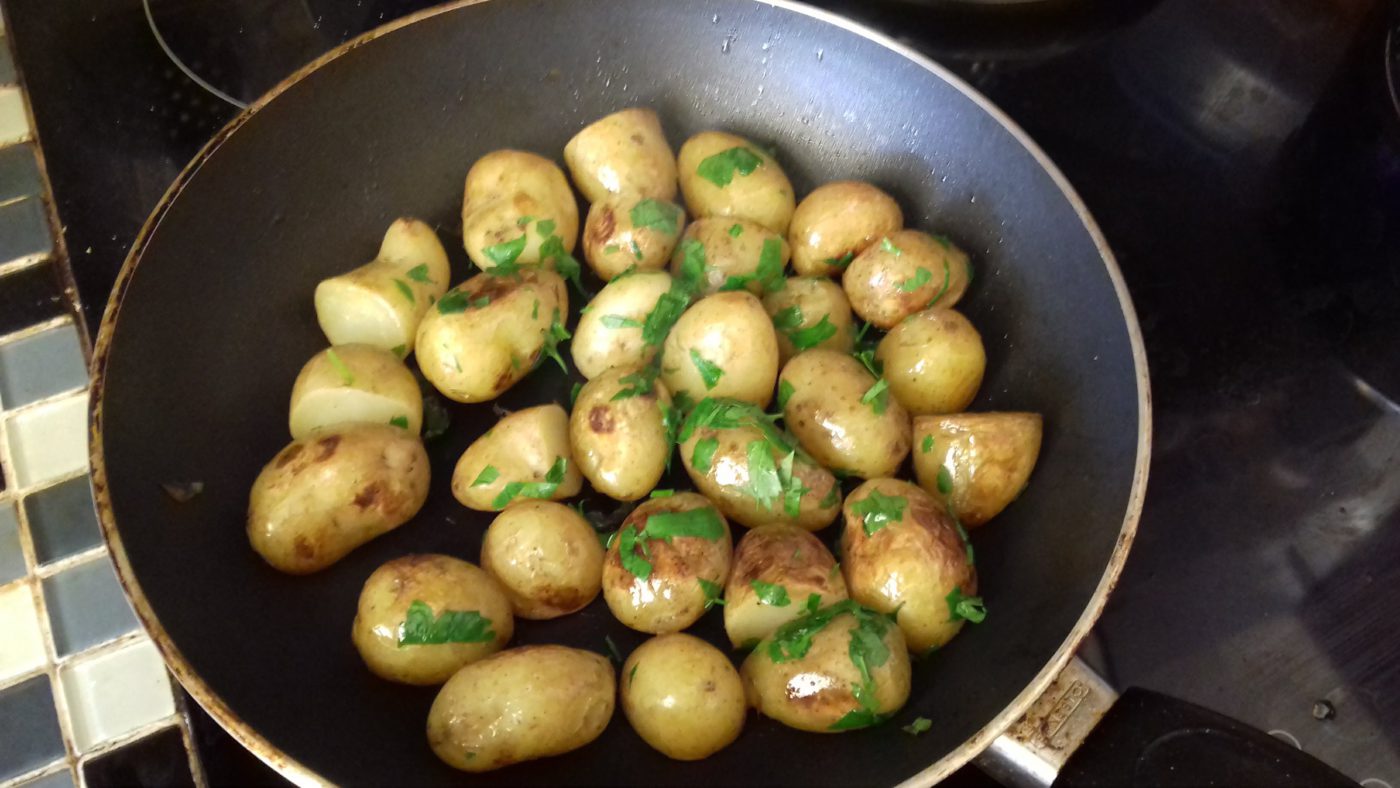 もう一つ、今の時期はジャージーロイヤル(日本ではジャージー牛のミルクで知られている島でできるジャガイモです)が店頭に出回る時でもあります。ポテトが大好きなイギリス人ですが、このジャージーロイヤルは5月から6月の時期にしか買えないので、特に楽しみにしているようです。他のタイプよりちょっと値段が高めですが、シンプルに茹でて、バターを溶かしたフライパンで軽く炒めたものを食べると、たかがジャガイモですが、おいしいのです。