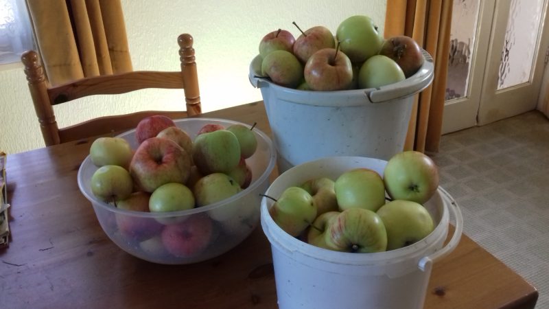 ジョンも私も先祖は採取民族じゃないか、と思うほどフリーフッドを採るのが好きです。 今までにも山や野原を歩いた際に、野生のマッシュルーム、ブルーベリー、野いちご、クルミ、栗、イチジクなどなど、様々なものを採取して野生(?)の味を楽しんできました。 イギリスでは残念ながら山菜を採る習慣がないし、知識もないのでせいぜいワイルドガーリックくらい、果物ではサクランボとプラムでしょうか。 8月に出かけたハイキング中、熟した実をつけたプラムの木をフットパス沿いに見つけ大量に取ってきました。 なべにかけて実を柔らかくしてから種を取り、庭のリンゴを煮たものと合わせてヨーグルト、ポーリッジ(オートミール)にかけて頂きます。 余った分は冷凍庫へ。 8月中旬から、リンゴを煮始め、今は庭のトマト、ジョンが種から育て、もったいないからと育った苗を全部鉢に植え庭中に置いたものが一斉に実をつけたのですが、始末するのは私の役目です。 皮と種を取ってトマトソースを作り、これも冷凍。 モロッコインゲンも調理してから同様に冷凍。 何でも手に入るスーパーが近くにあるのに、まるで僻地に住んで冬用の保存食をせっせと作っている心境になります。 これから別のタイプのリンゴが熟してくるので、それは乾燥器で半ドライにして冷凍、とまだ作業が続きます。 時間はかかるしで、時にはうんざりすることもありますが、コロナ騒動の中、お客さまがいない8月、9月をこんな風に食べ物相手に忙しく過ごせるのは喜ぶべきなのでしょうか?