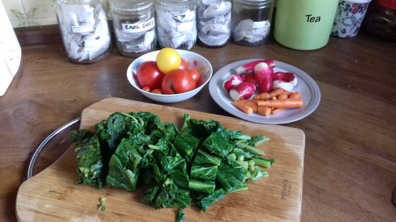 私たちは外食はほとんどしないので、毎日、自宅食です。 春からジョンがせっせと畑仕事をしたせいで、7月頃から畑や庭で採れる野菜が増え、スーパーで野菜を買う量が随分と減りました。 レタス類はずっと自前です。中でもソラマメ、トウモロコシの採りたては私には一番のごちそうです。 無農薬で新鮮な野菜はありがたいのですが、限られた種類のものが大量に採れるので、周囲におすそ分けしても十分な量があり、飽きないで食べるにはかなりの工夫が必要となります。 ニンジン、タマネギなどの基本野菜は別として、ズッキーニ、インゲンの類、ほうれん草、ビートルートなどはいかにして無駄にならないように消費するか苦労するところです。 ズッキーニは普段は輪切りにして両面を焼きつけて副菜として使うのですが、うりのように太くて大きいものが続けて採れると、どうして食べようか、と悩みます。 縦半分に割って中をくり抜き、詰め物をしてオーブンで焼く、トマトソースで煮る、薄く切ってキンピラ風に、といろいろ試しました。 結果、大量に消費できるのがフリッターでした。 ズッキーニの種の部分を除いてチーズ用削り器で細かくし、水分を除いたものに粉(これも小麦粉よりもインドのヒヨコマメの粉が合うとわかりました)、タマネギ、卵、そしてギリシャのフェタチーズを加えてまとめたものをフライパンで焼きます。 比較的簡単にできるしおいしいのでこの夏は度々作りました。 ジョンはズッキーニブレッドなるものに挑戦しました。 出来上がりはクルミ&シナモンケーキのようで、味もまあまあおいしいのですが、ズッキーニの存在感がまるでなく改良が必要です。