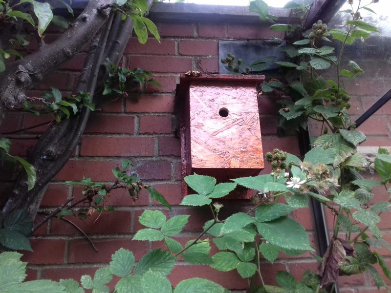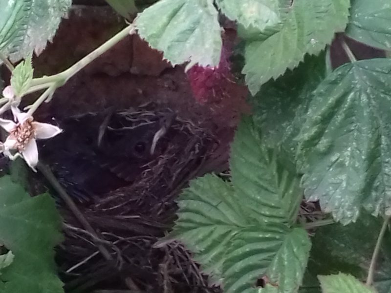 私たちの生活の中にも小さな「事件」がありました。我が家の庭に野鳥が二組も巣を作ったのです。一つはブラックバード(クロウタドリ)。通りに面した壁に沿ってローガンベリーが植わっているのですが、その茂みの中に巣を発見しました。先週、赤く熟してきた実を摘み始めたのですが、塀の真ん中くらいに行ったところで、巣でヒナを温めていたメスのブラックバードとばっちり目が合ってしまったのです。びっくりしてあわててそこを離れましたが、まさかこんな場所に巣を作るとは思いませんでした。もう一つはヘッジスパローというスズメです。日本のスズメより小さくシャイで人間に近づくことはありません。庭に面した部屋の入口横の密集した灌木の中に、どうも巣を作ったようだとのジョンの報告です。今まで庭に野鳥が巣を作ったことがなかったのですが、最近になってジョンが庭にやって来る鳥にせっせと餌をあげているので、そのたまものでしょうか。春先にシジュウカラ用の巣箱を作り、庭の奥の壁にかけたのですが、まったく使ってくれずがっかりしていたところでした。今は張り切って、庭にマグパイ(カラスの仲間で小さな鳥の卵やヒナを襲います)を見かけると、出ていって追い払います。こんなジョンの努力(?)に報いて二組ともヒナが無事に巣立ちしてほしいものです。