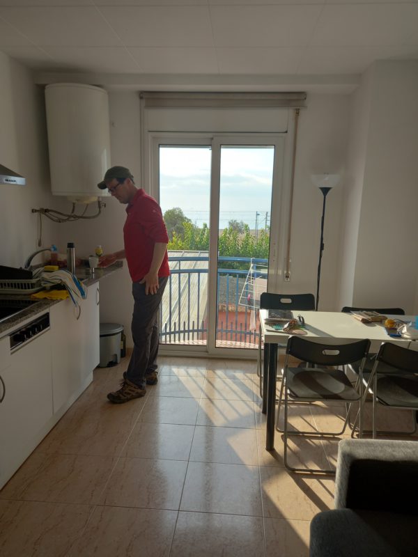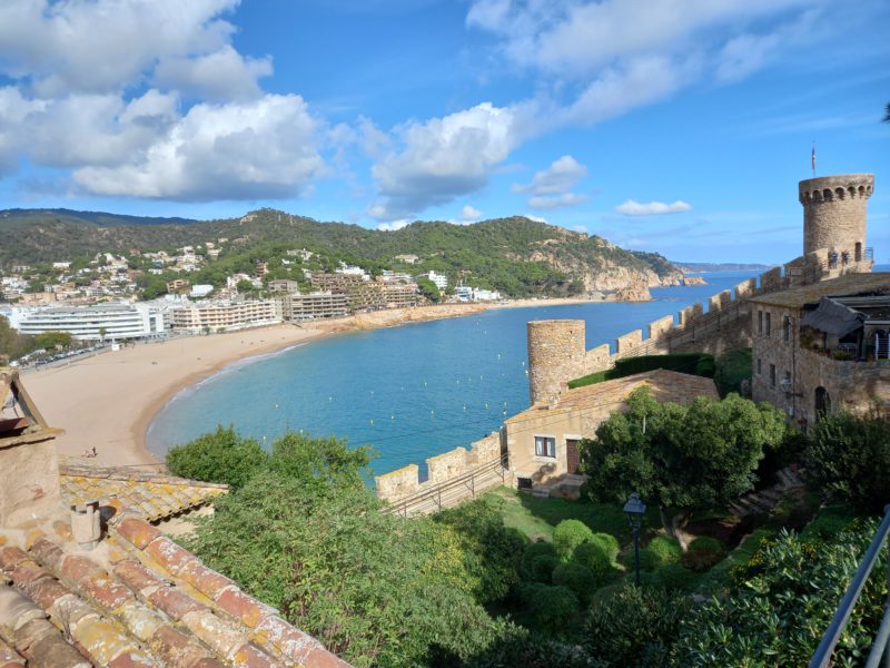 飛行機用に用意した医療用マスクをしてのフライトでしたが、行先が小さなジェロナ空港だったせいか、乗客は半分くらいでした。帰りの便は11月に入りシーズンオフになり同じ空港からのフライトがなく、バロセロナ空港からになりましたが飛行機は満席でした。スペイン入国時は用意した書類を提示しただけで、拍子抜けするくらいあっけない入国でした。行先はバロセロナからフランス国境に続く海岸線、コスタブラーバの MalgoDeMar という小さな町です。今回はいつもの「移動しながらハイキング」のパターンではなく、アパート形式のホテルに8日間滞在です。