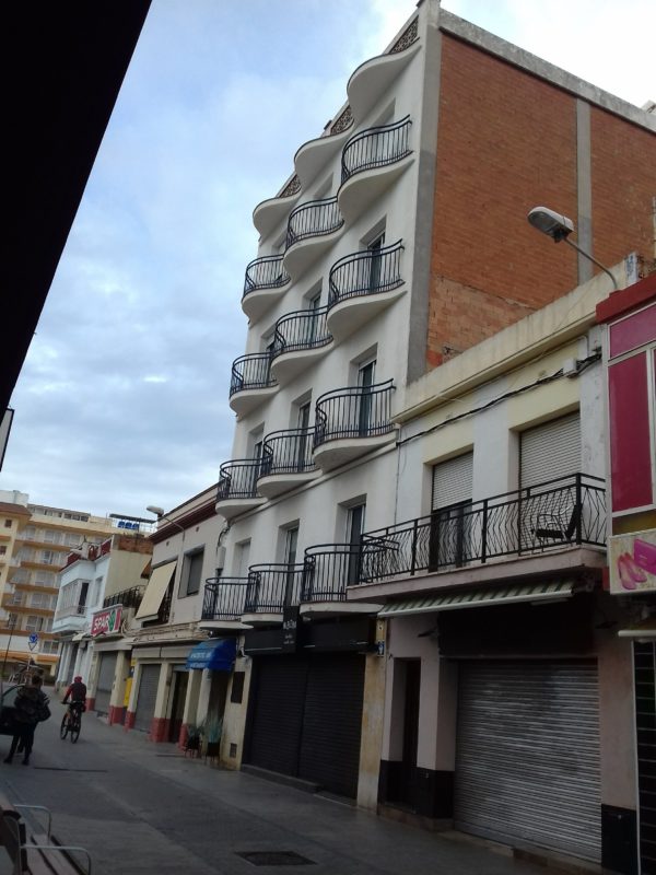 イギリス人を含めて北ヨーロッパ人の好む夏の休暇は一週間から二週間の間、海岸に寝転んで太陽を浴び、夜はバーやパブに行き、たまに近場の町や観光地を訪れる、というのが一般的な過ごし方です。そんな北国からのホリデイ客が滞在する高層リゾートホテル群がこの海岸沿いには数多くあります。MalgoDeMar にもホリデイ用のホテル街がありますが、シーズンオフのせいか閑散としていました。私たちが借りた部屋は主に地元の人が住む地域の4階建ての小さなホテルで、清潔な台所付きの比較的広い部屋が8泊で290ポンド(約4万円)と格安なのは季節外れのせいでしょうか。ホテルから通りを挟んでですが海が見えます。