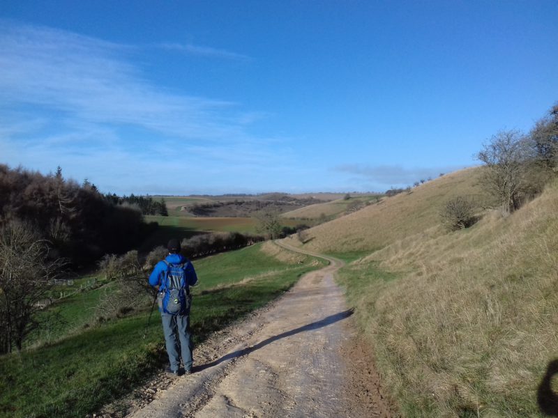 以下の二枚はコッツウォルズの一月の冬枯れの風景です。花がなく色彩に乏しくても、青空の下での田園風景はやっぱり絵になります。