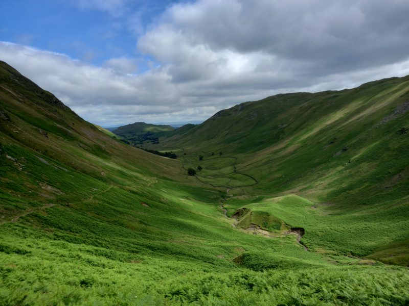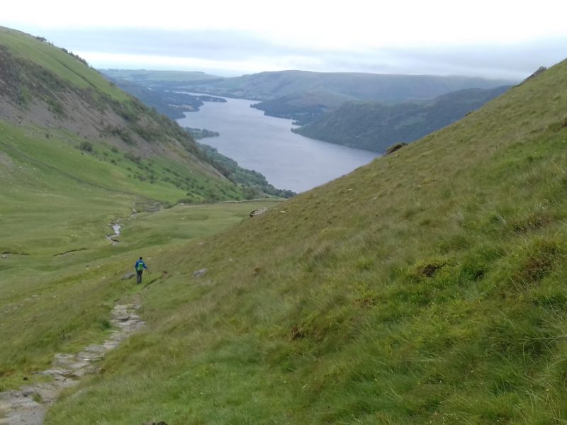 三日目は見事に晴れてくれました。雨の多い湖水地方ですが、イギリス人は悪天候覚悟でも訪れるのはそれほど魅力のある所なのでしょう。晴れればラッキーくらいの感覚です。私は膝の痛みで長時間は歩けないので、この日は湖の向かい側にある山を途中まで一緒に、後半は、ジョンが山の稜線コースを、私は湖に沿った低地の楽なコースを歩きました。コースを決める時にジョンは人気のヘルヴェレンに登るのかと思っていたら、人が多すぎるからと止めたそうです。特に有名な山でなくてもハイキングコースは至るところにあり、みんな思い思いに楽しんでいる印象です。