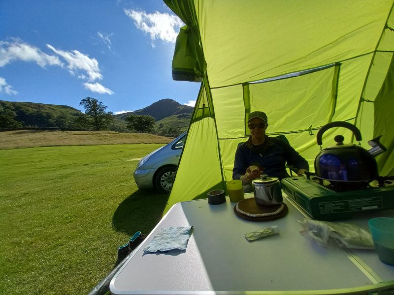 7月に入り週間天気予報をチェックしていたジョンが、来週の湖水地方の天気は曇りの予報でまあまあのようだから決行、と宣言しました。キャンプの話です。実は6月中に行く計画だったのですが、突然ジョンがギックリ腰になり延期になった次第です。椅子から立ち上がるのにも、ワンツースリーとやっていたので、長時間の車の運転なんかできるはずはありません。正直、私はキャンプにはあまり乗り気ではなかったのです。若い時から50代位までは山の縦走でテント泊も苦ではなかったのですが、歳を取ってくるとテントの出入りがきつくなり、ちょっと寒いと外での料理、食事もつらくなります。にもかかわらず今回のキャンプに同意したのは、コロナ明けでタダでさえ人気の湖水地方の宿の宿泊料がグンと上がり、しかも6月、7月は混雑する夏休みの前に行っておこう、と考える人も多く、手ごろなB&Bの予約がむずかしかったせいもあります。何年か前までは湖水地方で山歩きする際はユースホステルを利用していたのですが、コロナ状況下で現在はスクールハーティーしか受け入れてないとのこと。でも久しぶりの湖水地方、ジョンの大きいテントを買うからという言葉につられました。