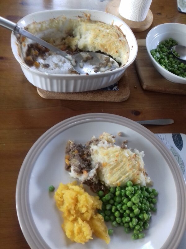 長年イギリスに住んでいる私たちの食事はというと、つつましい内容ではありますが、標準的なイギリス人よりはずっと健康的な食生活と自負しています。シングルマザーの下で育ったジョンは食に冒険はしません。肉類も時々チキンか挽肉を使うくらい、魚類もほとんど食べないので、主に野菜中心となります。味付けにチーズを使うこともイギリスで覚えたものです。日本食もあまり食べないので、おいしい和食は日本に行った時に、と自分に言い聞かせています。限られた食材から作る自己流のレシピも時と共に少しづつ増えてきました。最近はジョンも週に1回位ですが料理本を見ながら料理をするようになりました。味の方は?マークですが、作ってくれるだけでありがたい、と思っています。お客さんにはなるべく、数は少ないですがイギリス料理を出すようにしていますが、それ以外は私の自己流の料理を提供しています。お客さんに喜んでもらえる秘訣は、とにかく野菜をたっぷり、です。他の国の人はわかりませんが、日本人のお客さんは、旅行中はとにかく野菜不足で、と皆さんおっしゃるのです。