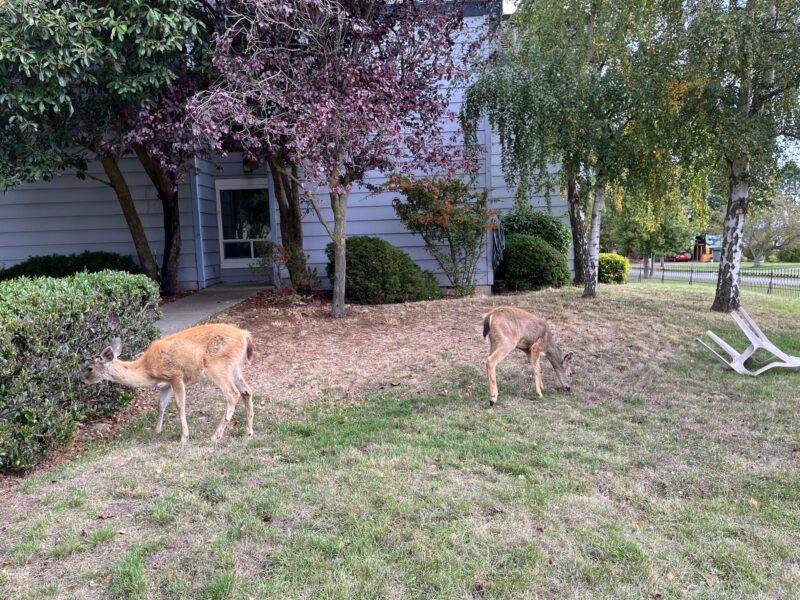 今回の旅行ではモーテルの他、ちょっとユニークな宿にも泊まりました。海岸のリゾートマンション泊の翌日から二泊したのは、中国系アメリカ人の家でした。二階に家族が住み、一階部分を貸し出しています。4人でも十分な広さで、キッチン、洗濯機など生活に必要なものはすべて揃っています。持ち主は写真家で、部屋に飾ってある風景写真はすべてご主人が撮ったものだそうです。翌日は宿に近いポートタウンゼントの町を観光。かってアメリカ海軍の基地の町で、灯台もあります。広々とした基地の施設は現在は公園として市民の憩いの場所になっています。町の心地も静かで、住宅街は古き良き時代のアメリカの木造の家々がそのまま残っていて、なんと野生の鹿がのんびりと住宅街を歩き回っていました。