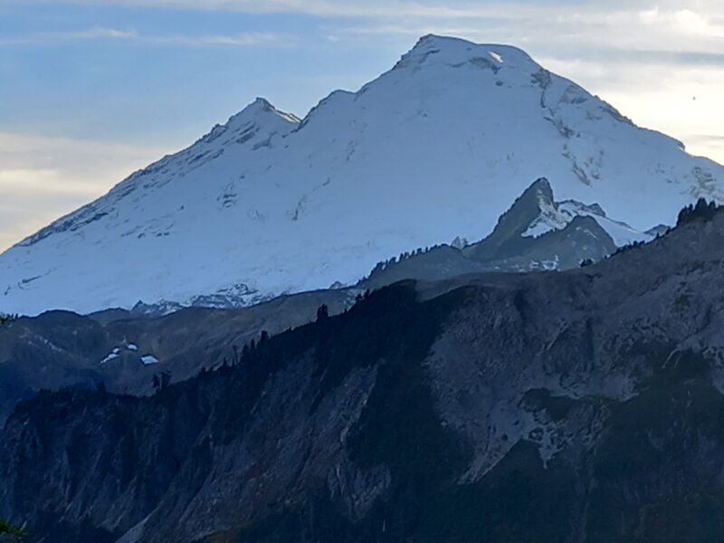 3時過ぎに山を下りて、メキシコ料理店で4人最後の食事を楽しみ、エアポート近くのホテルまでNさんを送り、3人になった私たちは再び高速道路を北上、モーテルに着いたのは8時を過ぎていました。モーテル泊りの翌日はは別な山域にあるMt.ベーカーに行く途中にある宿(持ち主が使用しない時に貸し出している別荘)です。別荘村の中にあり、滞在客以外は入れない様にゲートがあり、中に建っている別荘はどれも私たちには縁がないような立派なものでした。Mt.ベーカーを見た後は、クルーズ船(!)で二週間かけて日本に帰国するMさんを送るため再びシアトルへ戻りました。ジョンと二人になってからの三日間は州東部をのんびりとドライブしながら回ってイギリスに戻ってきました。アメリカの都会にはまったく魅力を感じませんが、雄大な自然には何回訪れても感動してしまいます。物価も高騰、食の楽しみもない滞在でしたが、ワシントン州を縦横に車で走り回ったロードトリップは、島国の日本やイギリスでは味わえない種類の旅でした。