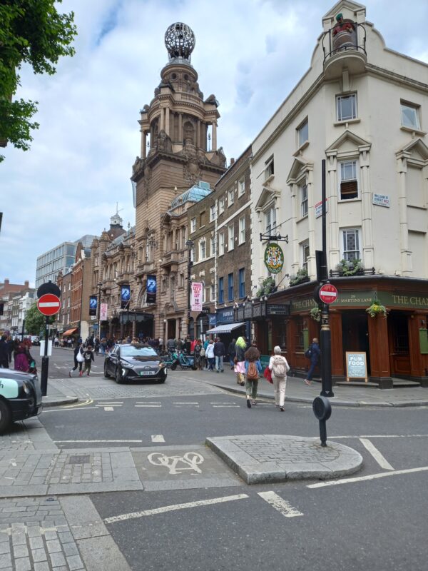 当日の朝、8時のバスに乗り、ロンドンに着いたのが11時。2時半からのマチネには時間があるので、中華街でランチをすることにして、ヴィクトリア駅からバッキンガム宮殿を通って中華街に向かいました。歩いても30-40分の距離です。宮殿周辺は衛兵交代の時間にしても、交通規制があり、見物客もいつもより多かったのですが、翌日のニュースで、週末にチャールズ王の公式の誕生日の祝賀行事があるそうで、その練習だったようです。人ごみを抜けて中心地にある中華街まで行き、チェルトナムでは食べられないおいしい飲茶を楽しみ、少し時間を潰してからナショナルギャラリーの近くにある劇場に向かいました。