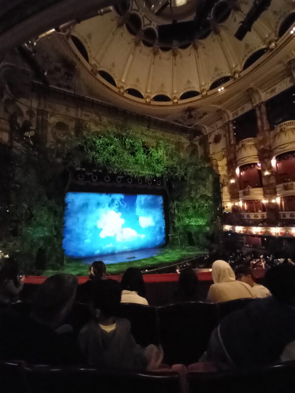 公演が開催されているコロシアム劇場は、大きくはないのですが、外観も内部もとてもりっぱです。これまでにも何回かロンドンでミュージカルや舞台を観ているのですが、どこの劇場も作りがとても重厚で、舞台の左右にはボックス席もあり、贅をつくしたような内装にはいつも感心してしまいます。大英帝国時代に建てられたのでしょうか。シェークスピアを始めとして、昔から舞台演劇が盛んで、それが伝統として現在でも続いているのを感じさせられます。演劇と共に、劇場内でも観客が楽しめるように、休憩時間にはアルコール類を売るバーまであります。客席は満席、意外にも日本人はそれほど多くなく、イギリス人以外はロンドンに観光できている海外の家族連れを多く見かけまっした。何年か前にやはりロンドンで観た、「海辺のカフカ」の舞台の観客は80%位は日本人だった記憶があります。今回の舞台はジブリのアニメ映画がいかに広く海外で愛されているのがわかります。今回の舞台は日本語のため、舞台の上部と左右に英語の字幕が出ますが、映画を見ている子供たちには多分ストーリーがわかっているので字幕は必要がないのでしょう。