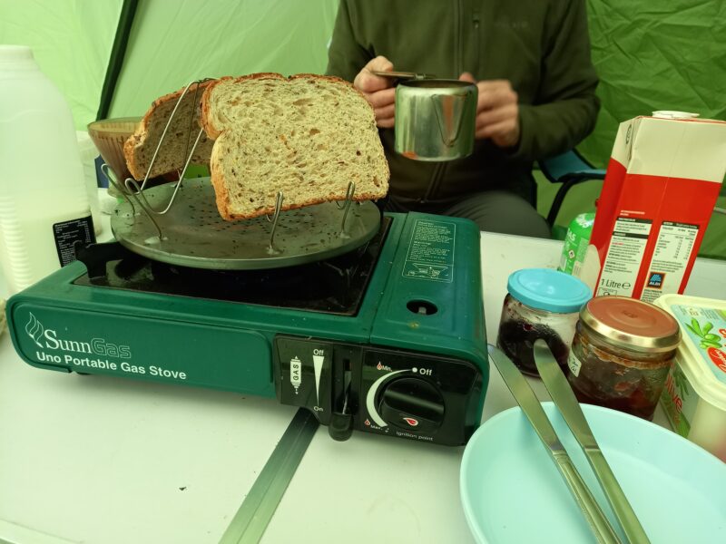 今年のイギリスの天気はとにかく雨が少なく、まったくイギリスらしくないのですが、その傾向は6月末になっても続いています。5月中旬、普段は雨の多い湖水地方も天気が安定、との予報に、チャンスとばかり去年に続いてキャンプに行くことにしました。人気の湖水地方、ホテルやB&Bはかなり前からの予約が必要なのですが、キャンプ場なら直前の予約でも大丈夫と予想していました。でも誰もが同じ考えを持つようで、ここというキャンプ場はすべて予約で埋まっていました。それでもなんとか見つかったのが、湖水地方の端にあり、辺鄙な場所に位置する農家が空き地を利用してのキャンプ場だったのです。結果的には静かで居心地はよかったのですが。