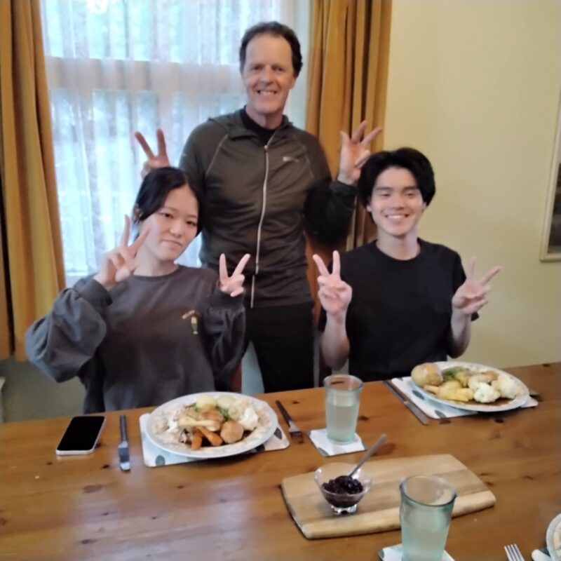 三日目は4人でハイキング。ソウイはジョンの歩くペースにちゃんと付いて行き、ジョンのゆっくり話す英語の説明をそれなりに理解して楽しそうでした。私の方はカノンととりとめのないことを話しながらのんびりと歩き、天気がよかったこともあり、楽しい一日になりました。最後の日は、なんとかお土産買いを済ませ、お昼には私がスコーンを作り、夜はジョンのローストチキンとイギリスの味を経験してもらいました。食事中に、二人が翌日からのロンドン観光計画を話すのを、そうそう、その調子、と心の中で独り言を言いながら聞いていました。