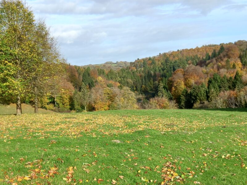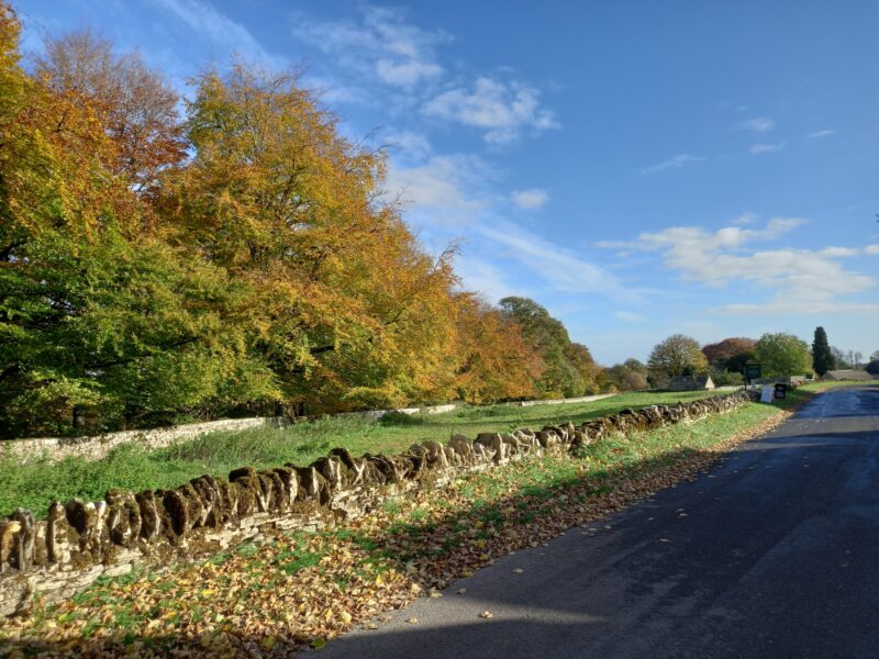 先週、 紅葉(英語ではオータムカラーと訳しているようです)が終わらないうちに、 秋のコッツウォルズを見に行こうと、 ミズデンというチェルトナムから車で30分ほどの村に出かけました。 この村も大きなマナーハウスが中心にあり、 一方は谷間になっています。 この村からはフットパスが3方角に伸びているので、 コースによって違う景色が楽しめます。